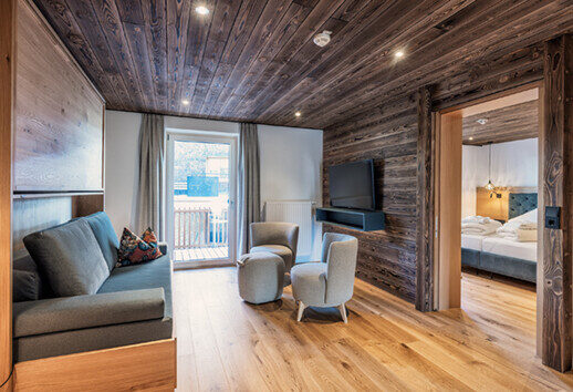 Die Juniorsuiten Deluxe bieten besonders viel Platz zum Wohlfühlen. Der Wohnbereich kann auch zum trennbaren Kinderzimmer umfunktioniert werden.